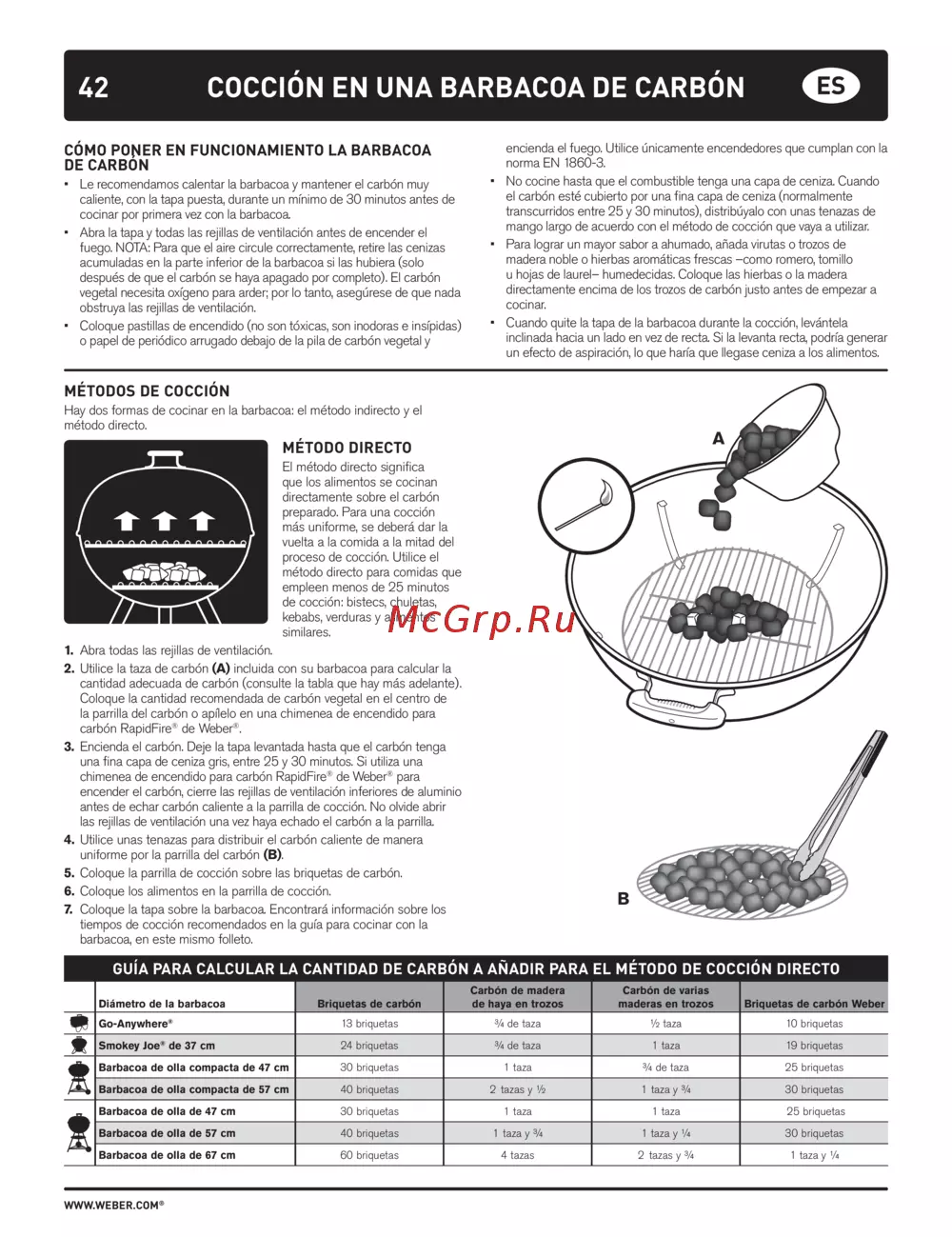 - Инструкции по измерению и добавлению древесного угля при прямом способе приготовления p.78