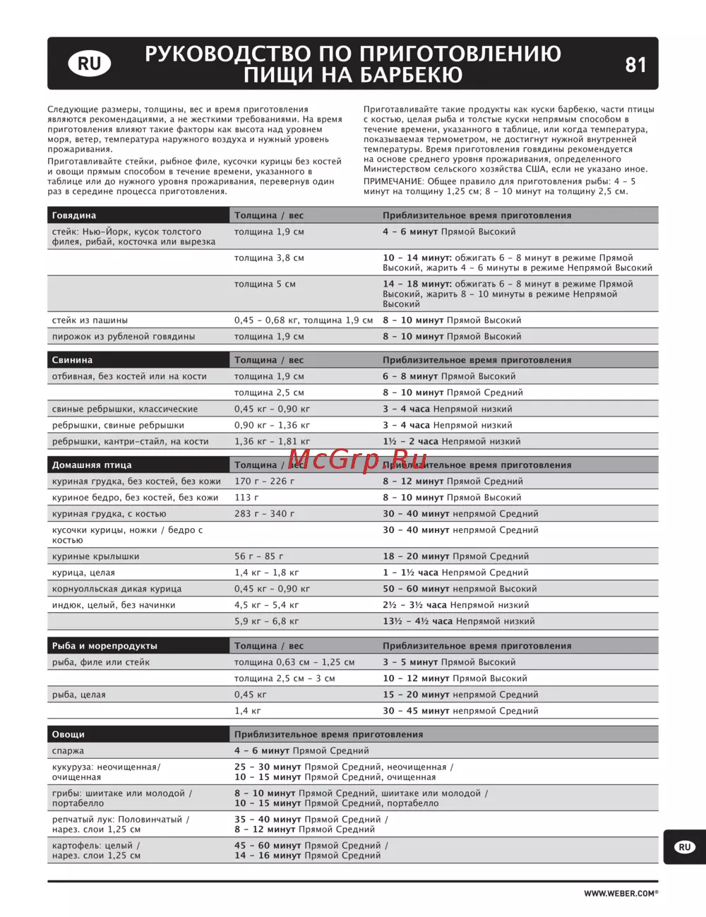 - Руководство по приготовлению пищи на барбекю p.81