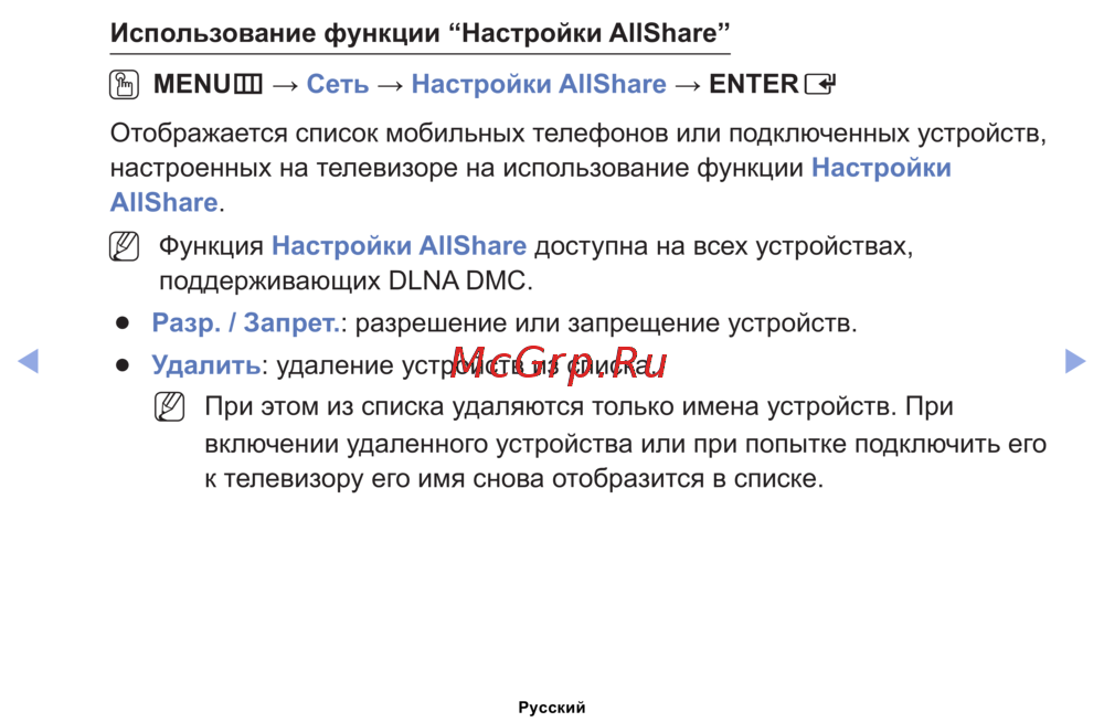 Узнайте, как использовать функцию Настройки AllShare для управления подключенными устройствами на телевизоре. Легко добавляйте и удаляйте устройства из списка.