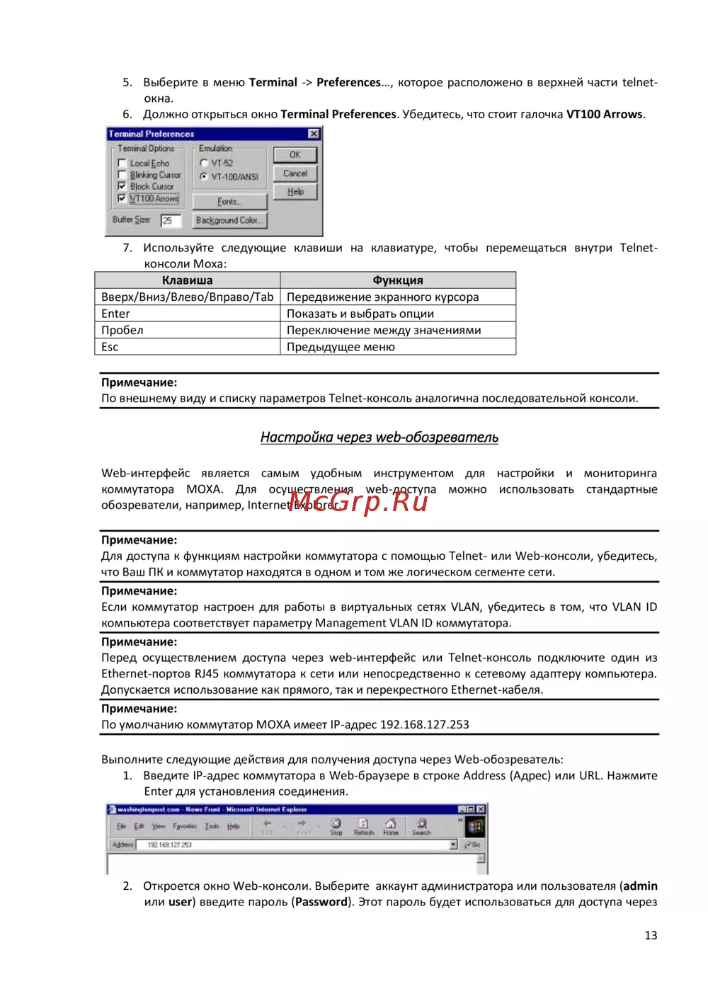 коммутатора MOXA. Для осуществления web-доступа можно использовать стандартные
