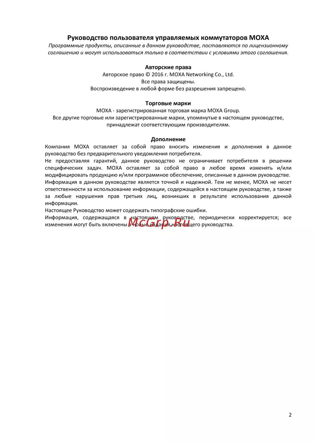 Компания MOXA оставляет за собой право вносить изменения и дополнения в данное