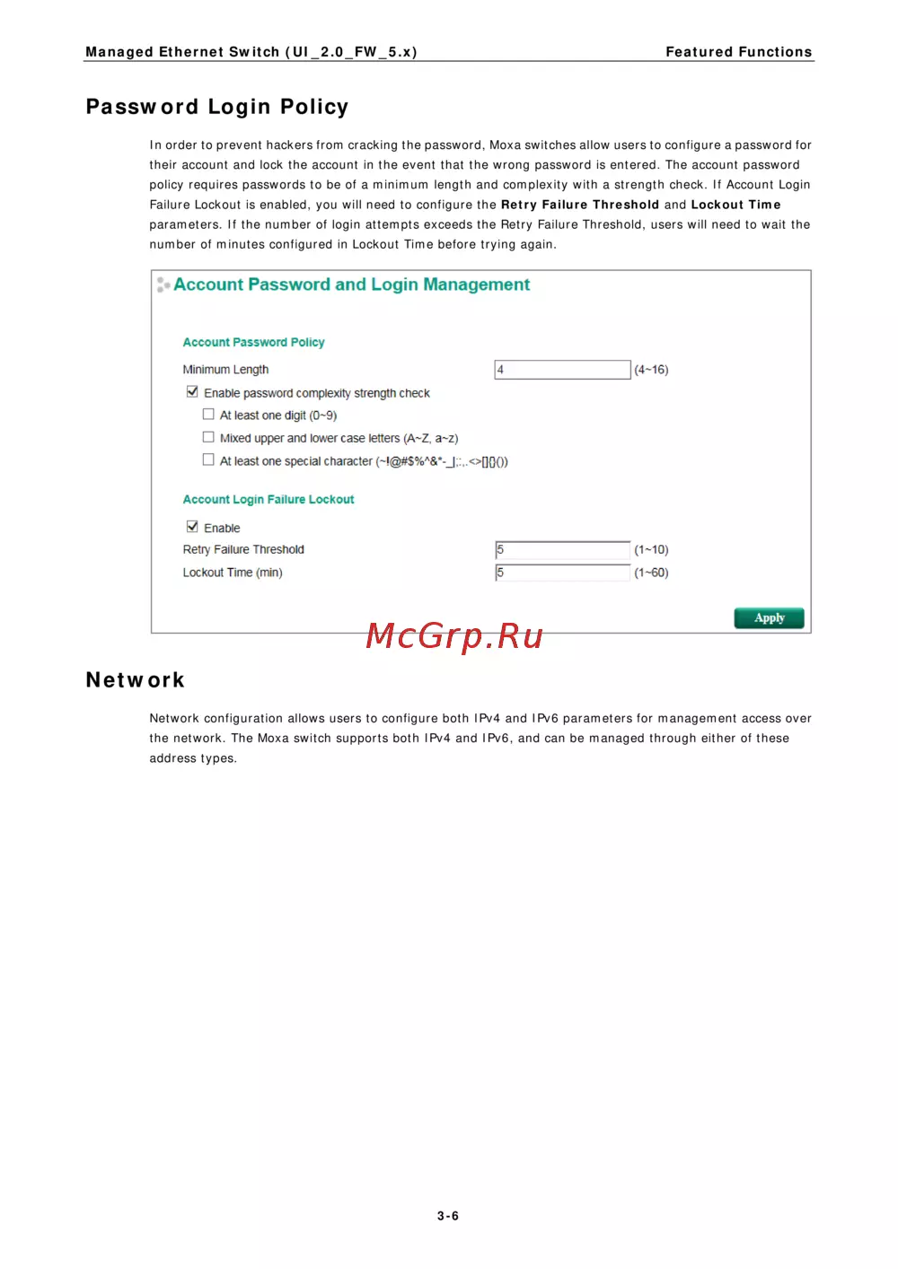 Moxa EDS-G516E-4GSFP — управляемый Ethernet коммутатор: политика паролей и настройки сети [19/116]