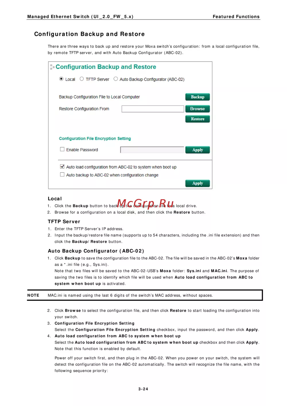 by remote TFTP server, and with Auto Backup Configurator (ABC-02).