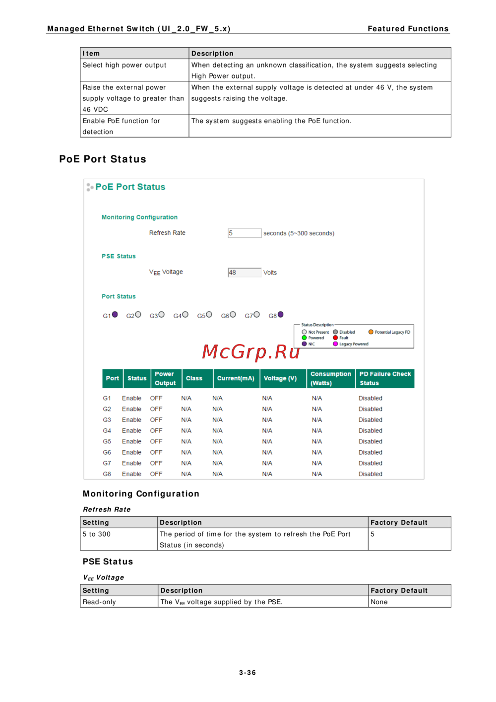 voltage supplied by the PSE. None