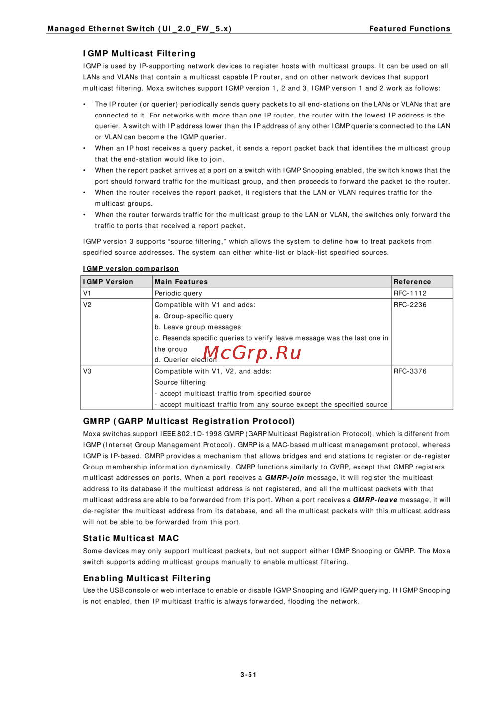 multicast filtering. Moxa switches support IGMP version 1, 2 and 3. IGMP version 1 and 2 work as follows:
