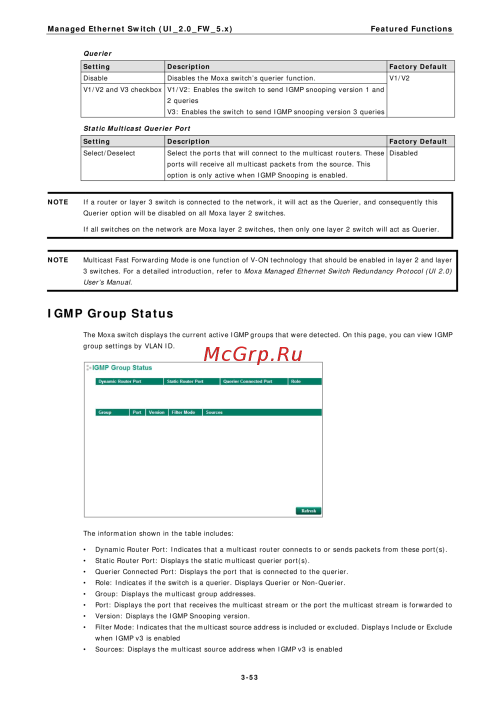 Disable Disables the Moxa switch’s querier function. V1/V2
