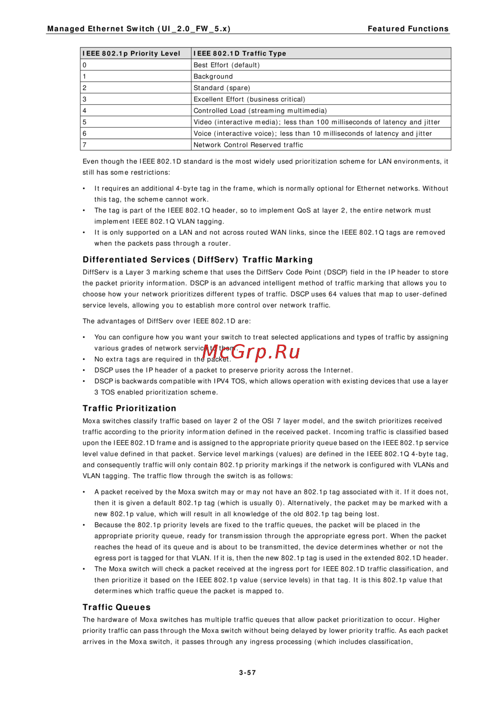• The Moxa switch will check a packet received at the ingress port for IEEE 802.1D traffic classification, and