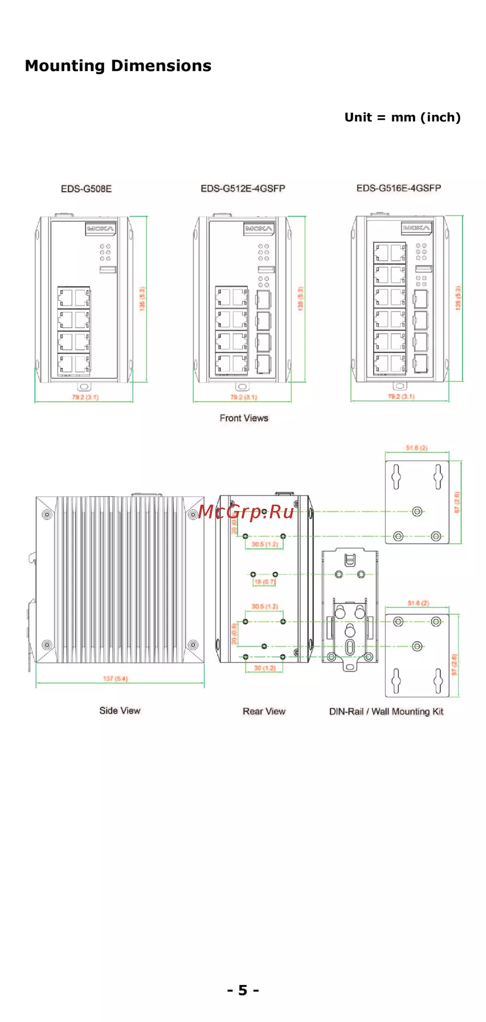 Moxa EDS-G516E-4GSFP [5/16] Mounting dimensions