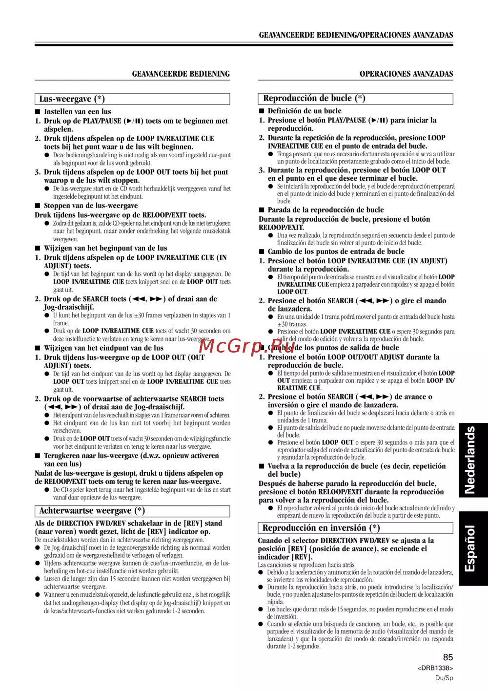 ¶ Zodra dit gedaan is, zal de CD-speler na het eindpunt van de lus niet terugkeren