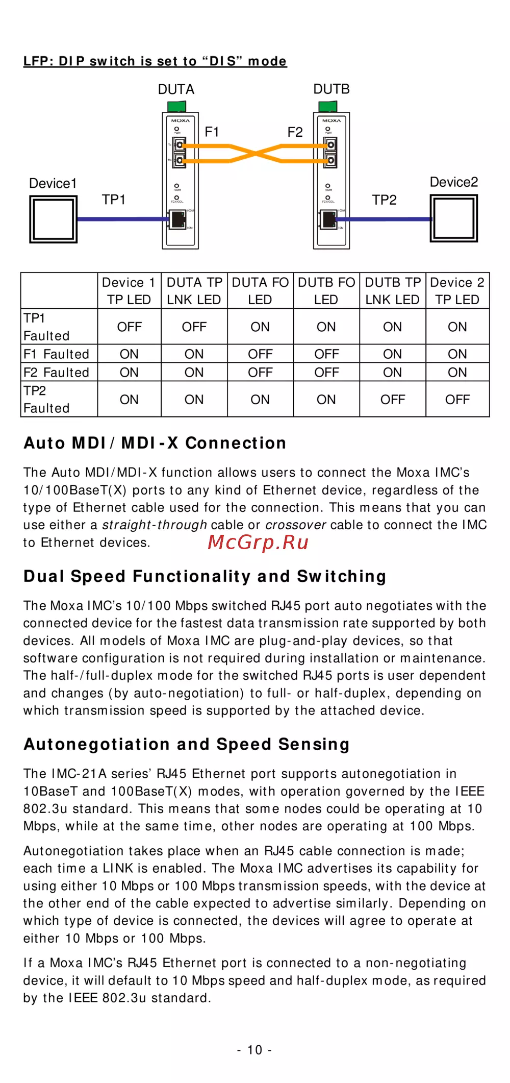 device, it will default to 10 Mbps speed and half-duplex mode, as required