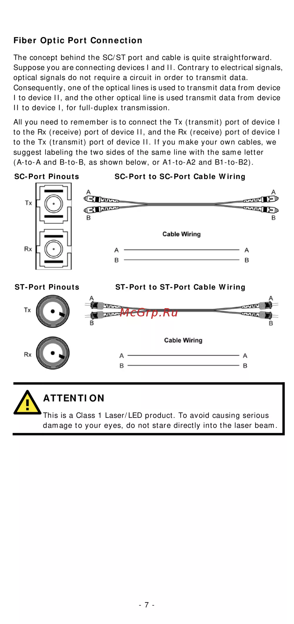 to the Tx (transmit) port of device II. If you make your own cables, we
