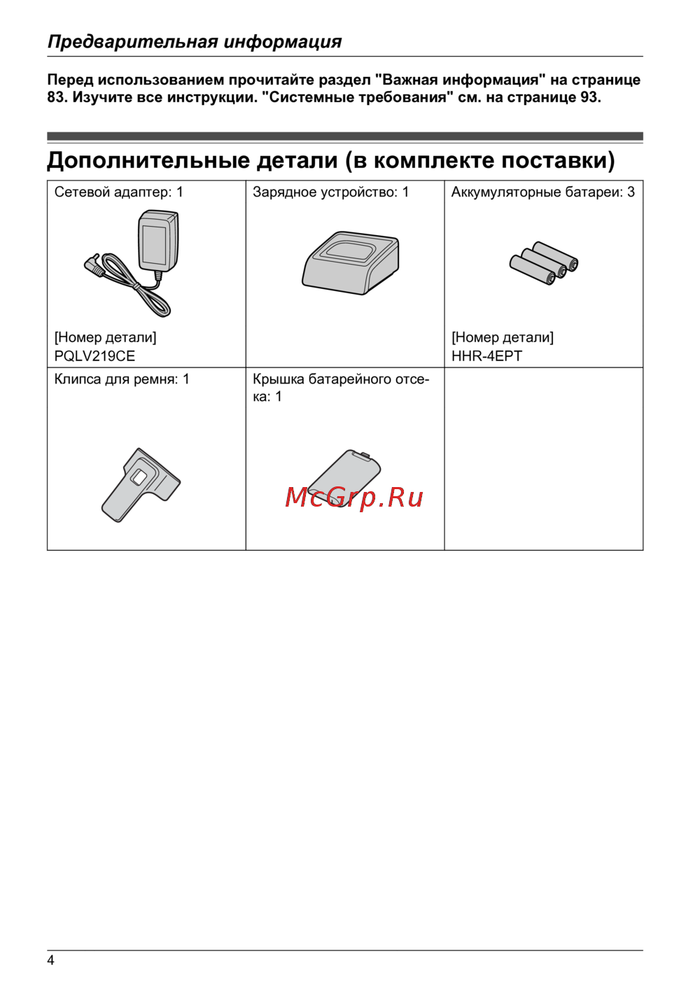 - Перед использованием прочитайте раздел важная информация на странице 83 изучите все инструкции системные требования см на странице 93 p.4