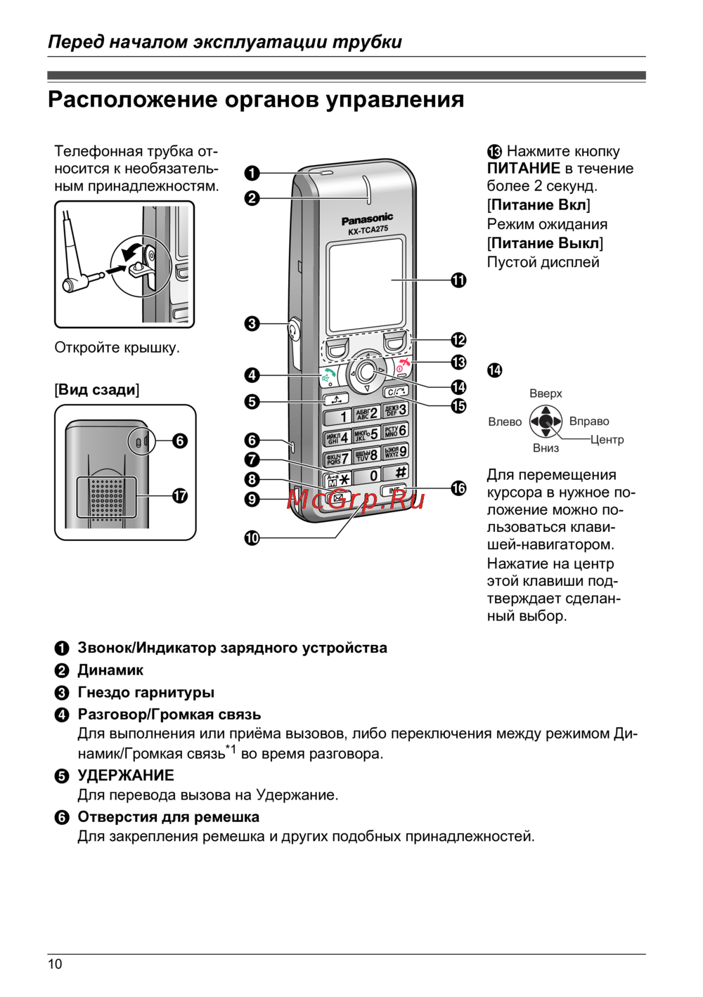 Panasonic KX-TCA275 — инструкция по эксплуатации телефонной трубки и ее функциям [10/98]