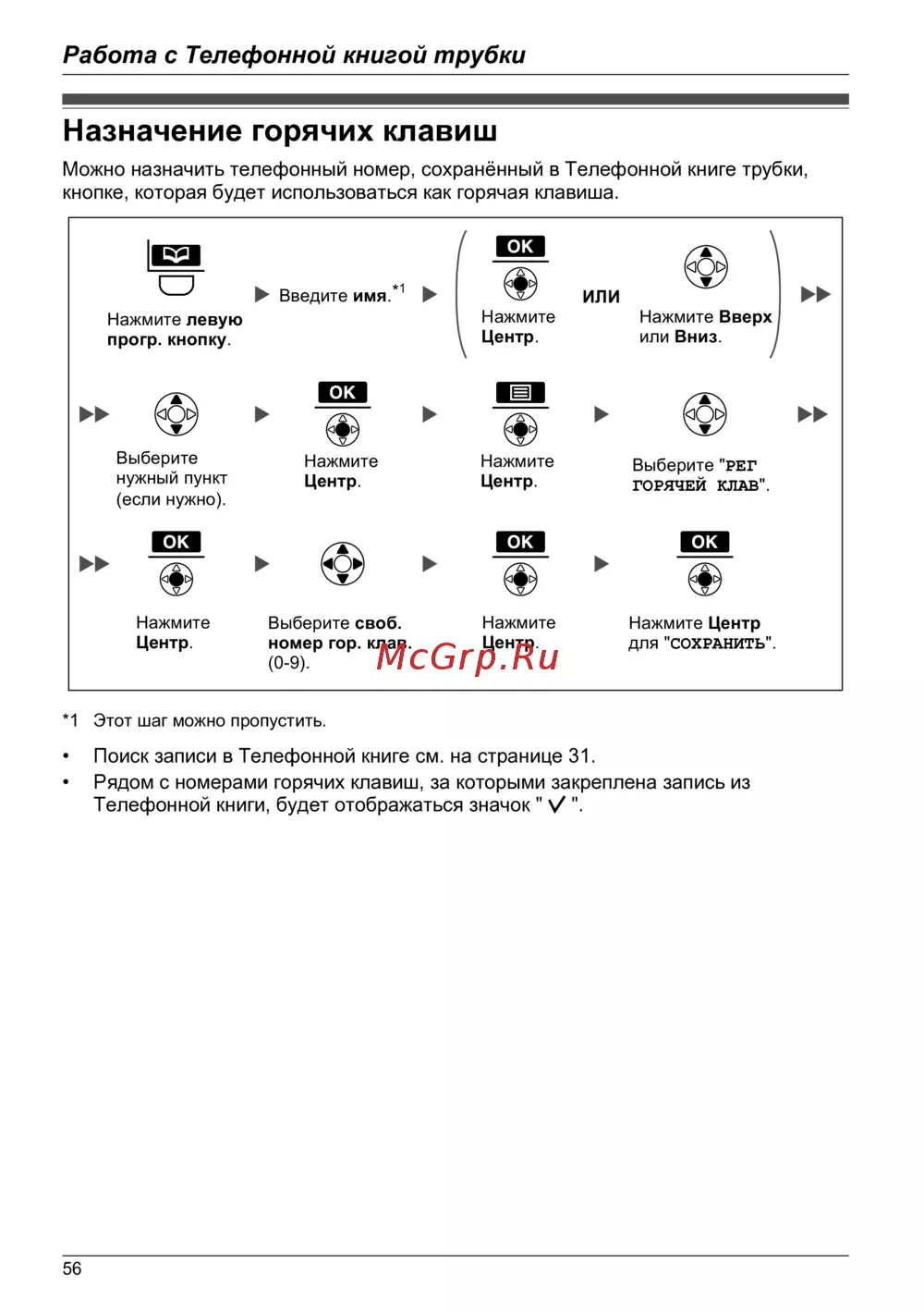 - При удалении записи в телефонной книге которая была также назначена горячая клавиша набор по горячей клавише также будет удалён см на странице 56 p.64