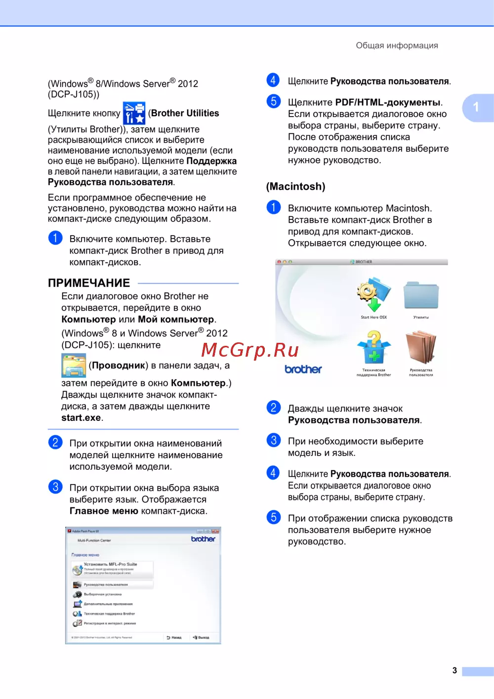 Узнайте, как получить доступ к руководствам пользователя и установить программное обеспечение для вашего устройства. Подробные шаги для Windows и Macintosh.