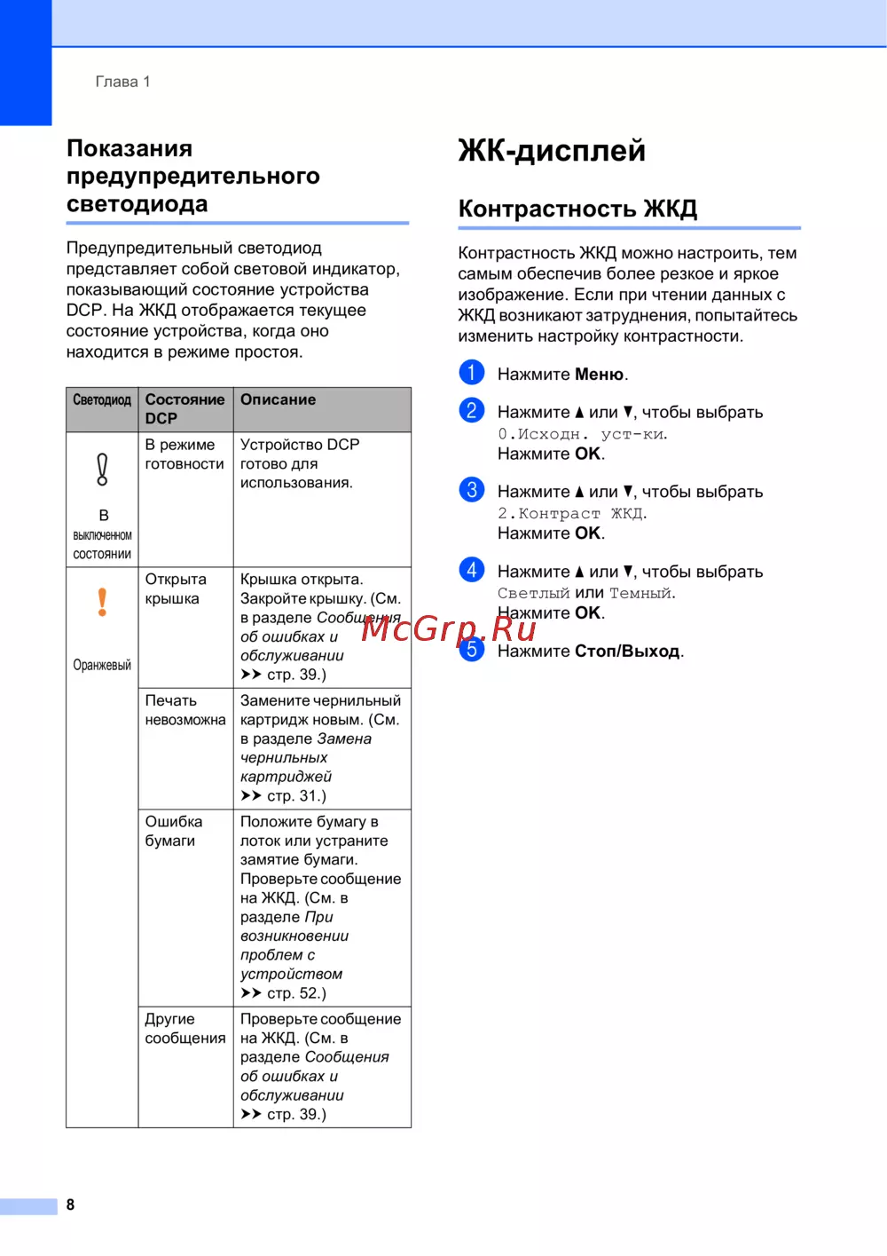 Brother DCP-J100 — настройка и диагностика светодиода и ЖК-дисплея устройства [16/91]
