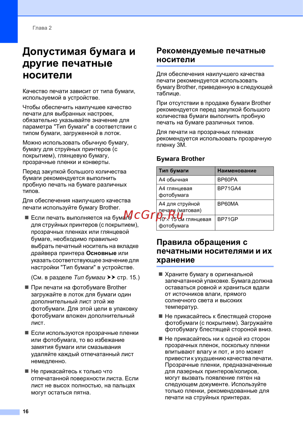 Brother DCP-J100 — выбор бумаги для печати: советы и рекомендации [24/91]