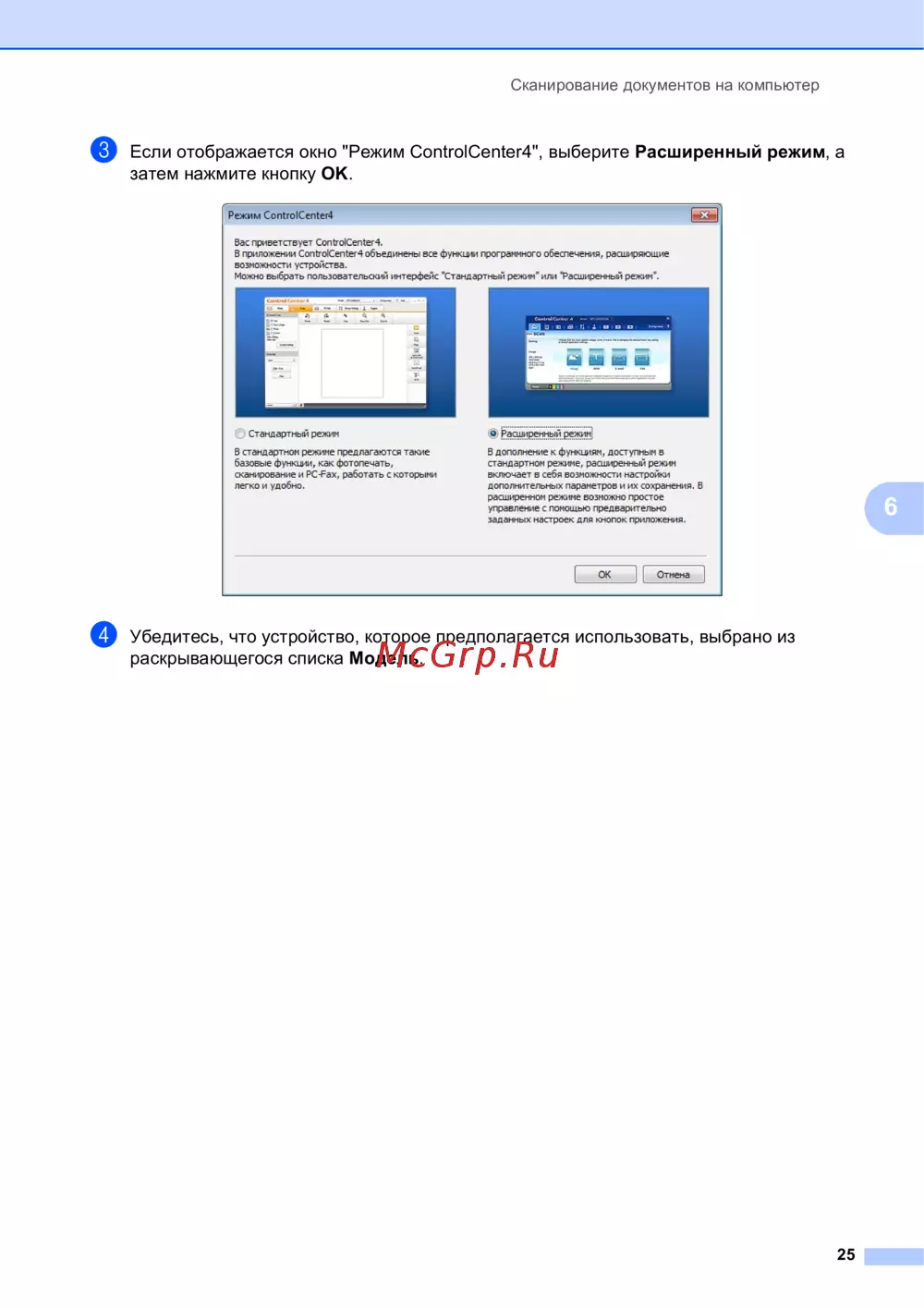 c Если отображается окно "Режим ControlCenter4", выберите Расширенный режим, а