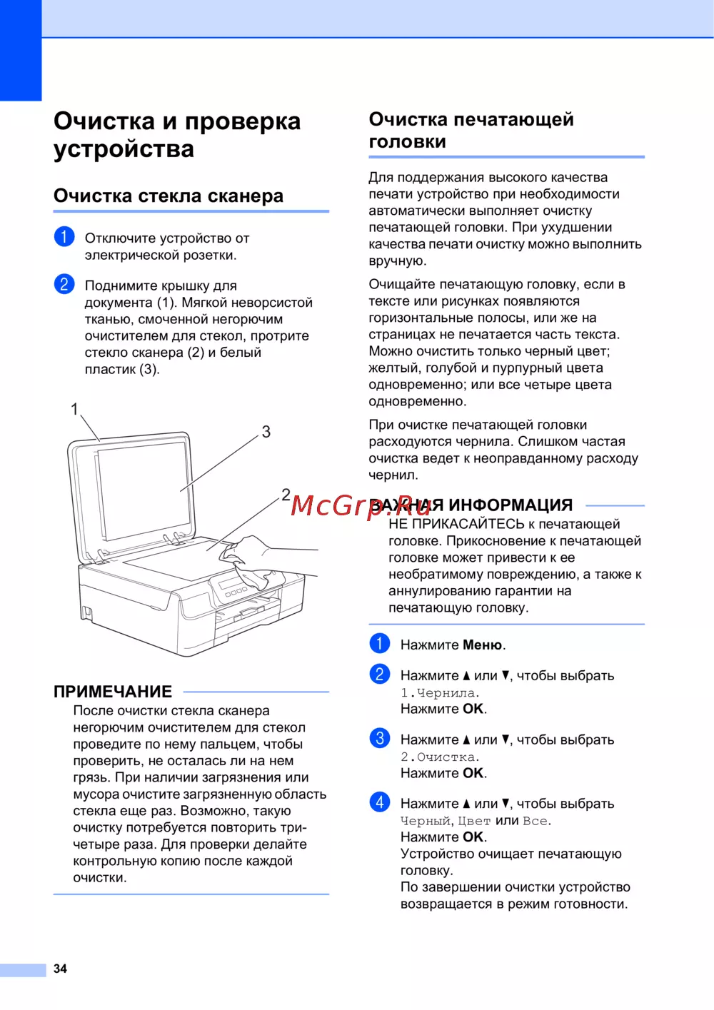 Узнайте, как правильно очистить стекло сканера и печатающую головку для поддержания качества печати. Следуйте простым шагам для эффективной очистки.