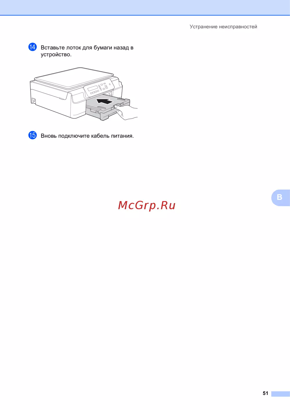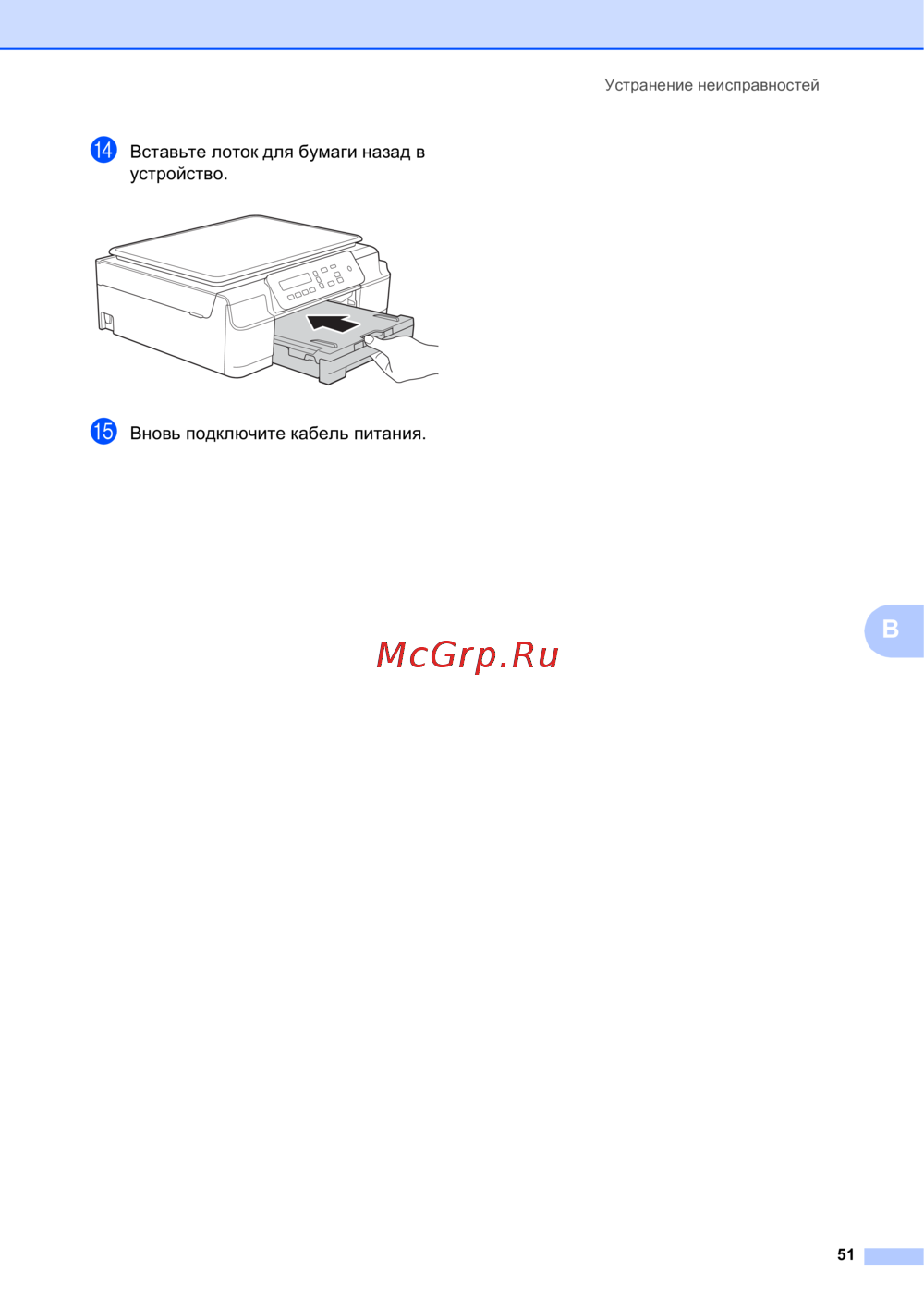 n Вставьте лоток для бумаги назад в