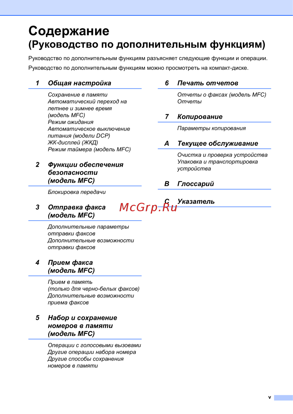 - Набор и сохранение номеров в памяти модель mfc p.7