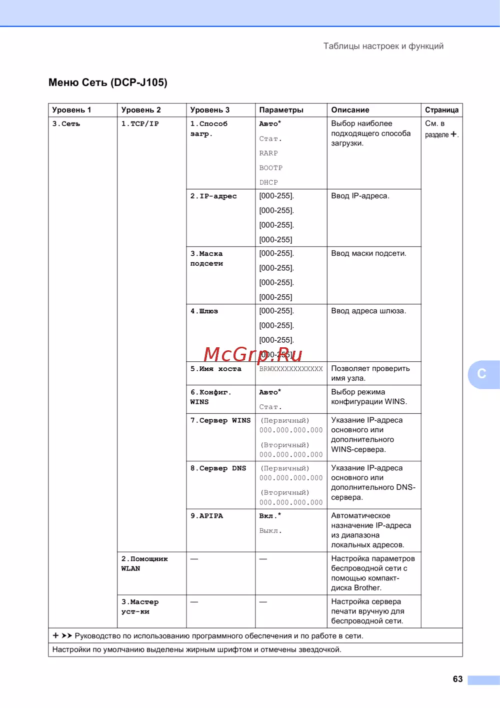Brother DCP-J100 [71/91] Таблицы настроек и функций