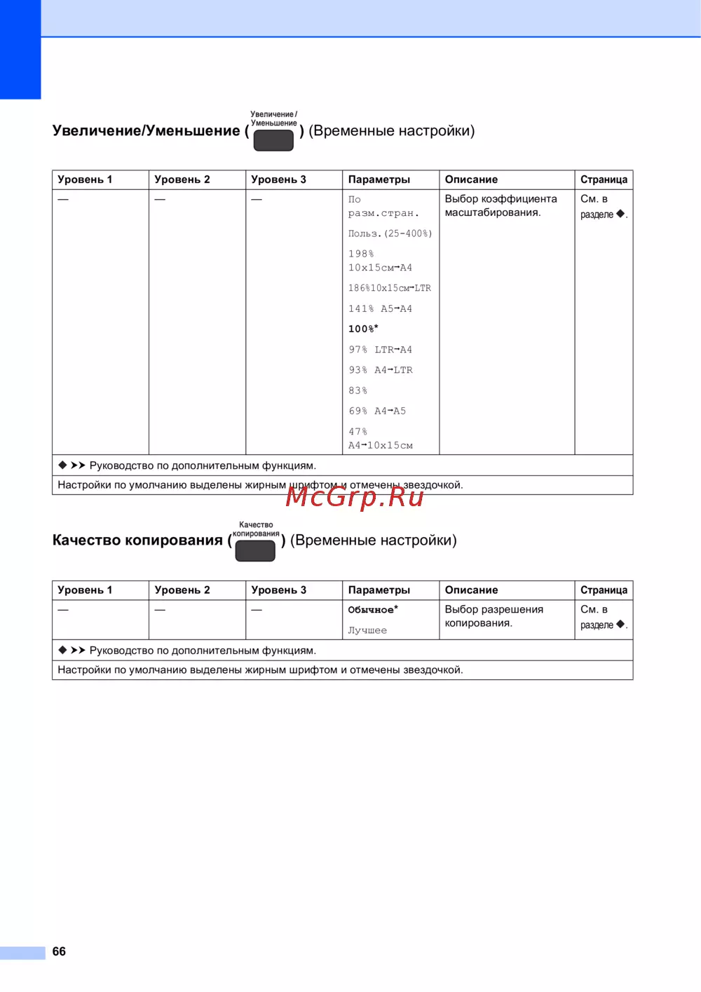 Brother DCP-J100 — настройки копирования: Увеличение, уменьшение и качество [74/91]