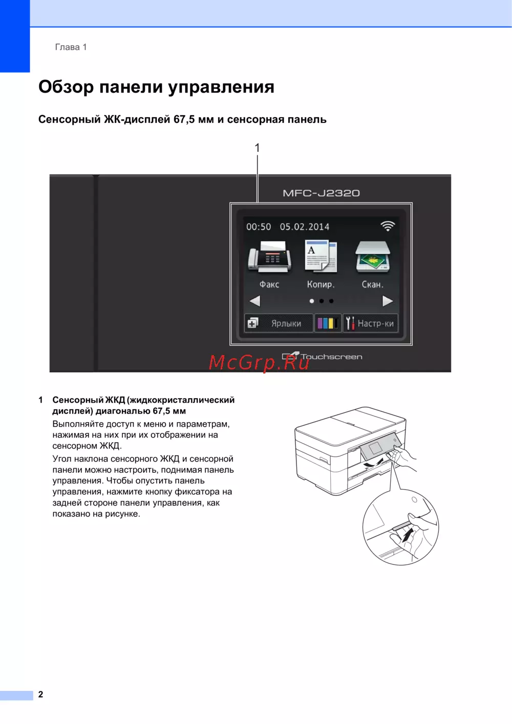 Brother MFC-J2320 [10/84] Сенсорный жк дисплей 67 5 мм и сенсорная панель
