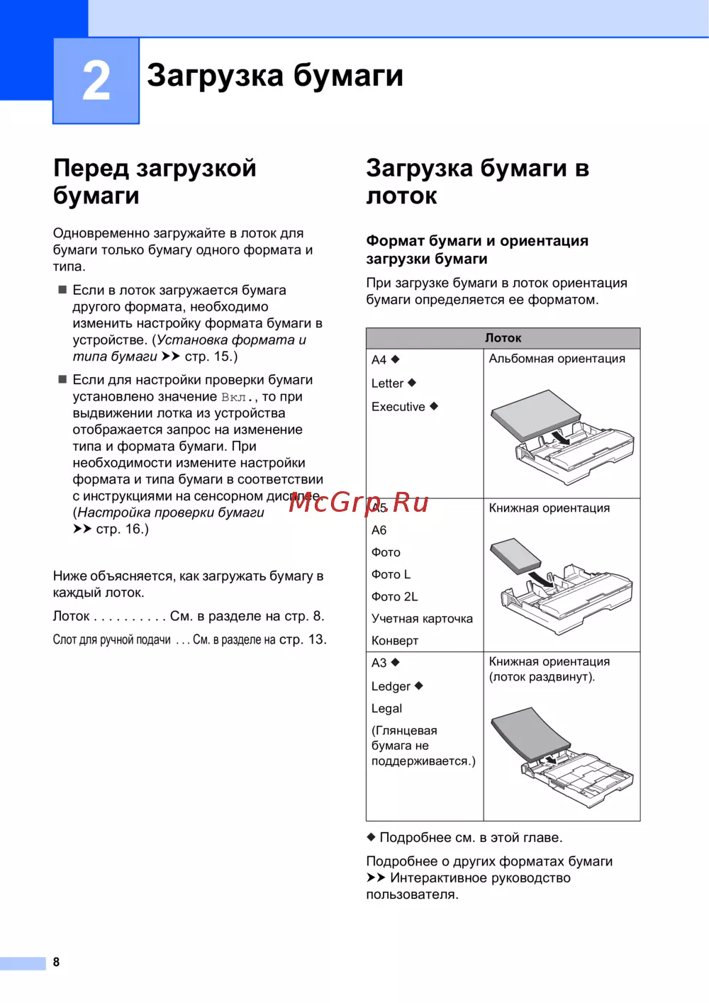 ![Brother MFC-J2320 [16/84] Формат бумаги и ориентация загрузки бумаги](/views2/1198932/page16/bg10.png)