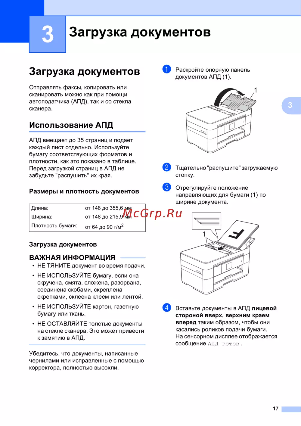 Brother MFC-J2320 — как правильно загружать документы в автоподатчик сканера [25/84]