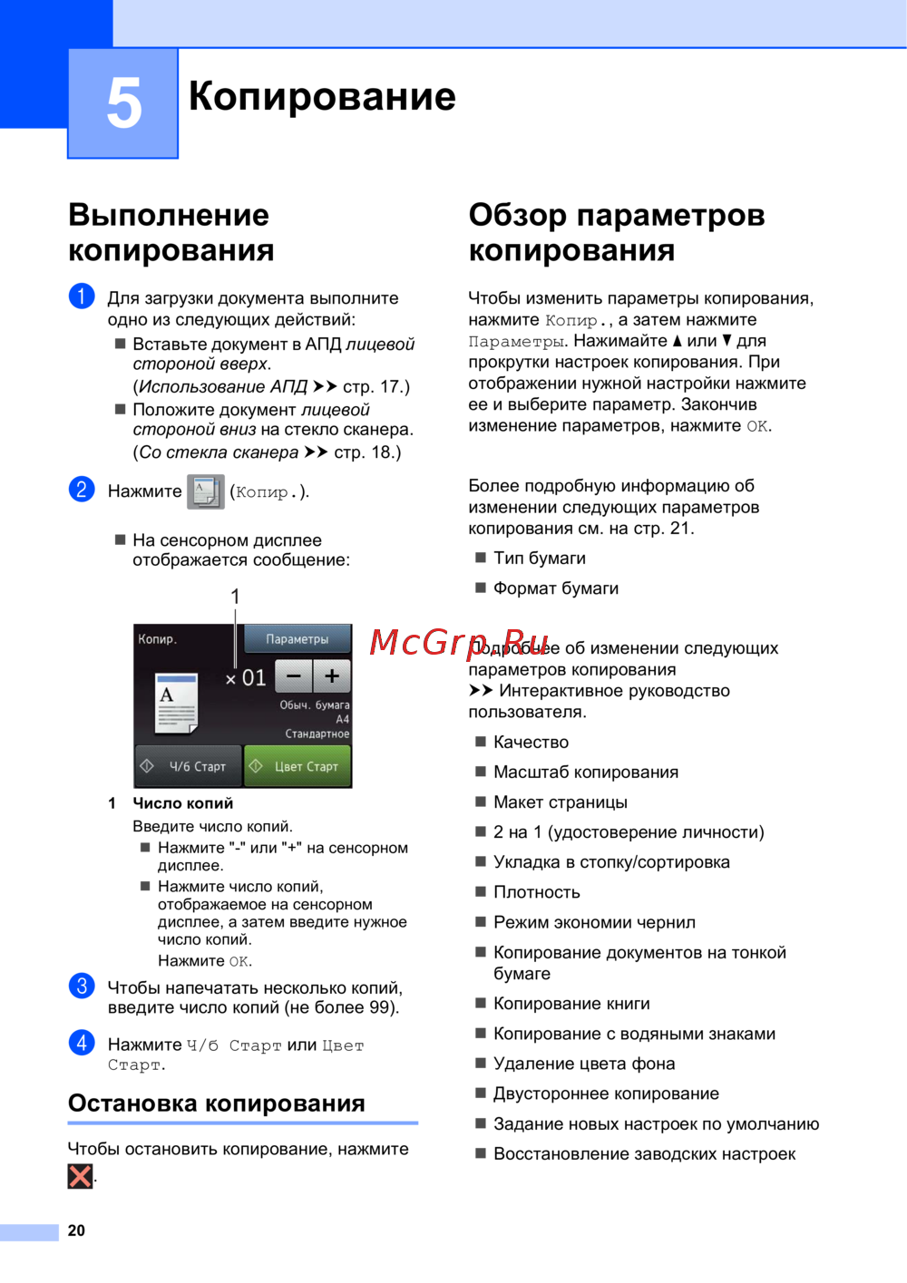 Узнайте, как правильно копировать документы с помощью различных настроек. Подробное руководство по выбору параметров и остановке копирования.