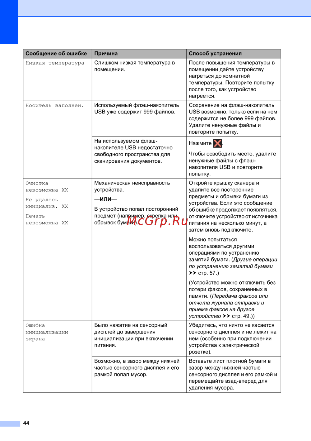Brother MFC-J2320 — устранение ошибок устройства: низкая температура и механические неисправности [52/84]