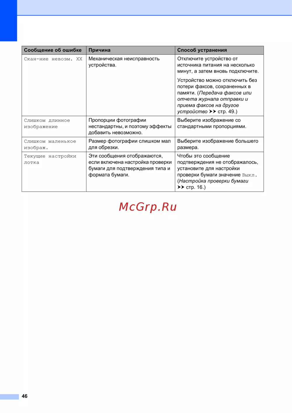 - Сообщения об ошибках и обслуживании p.45