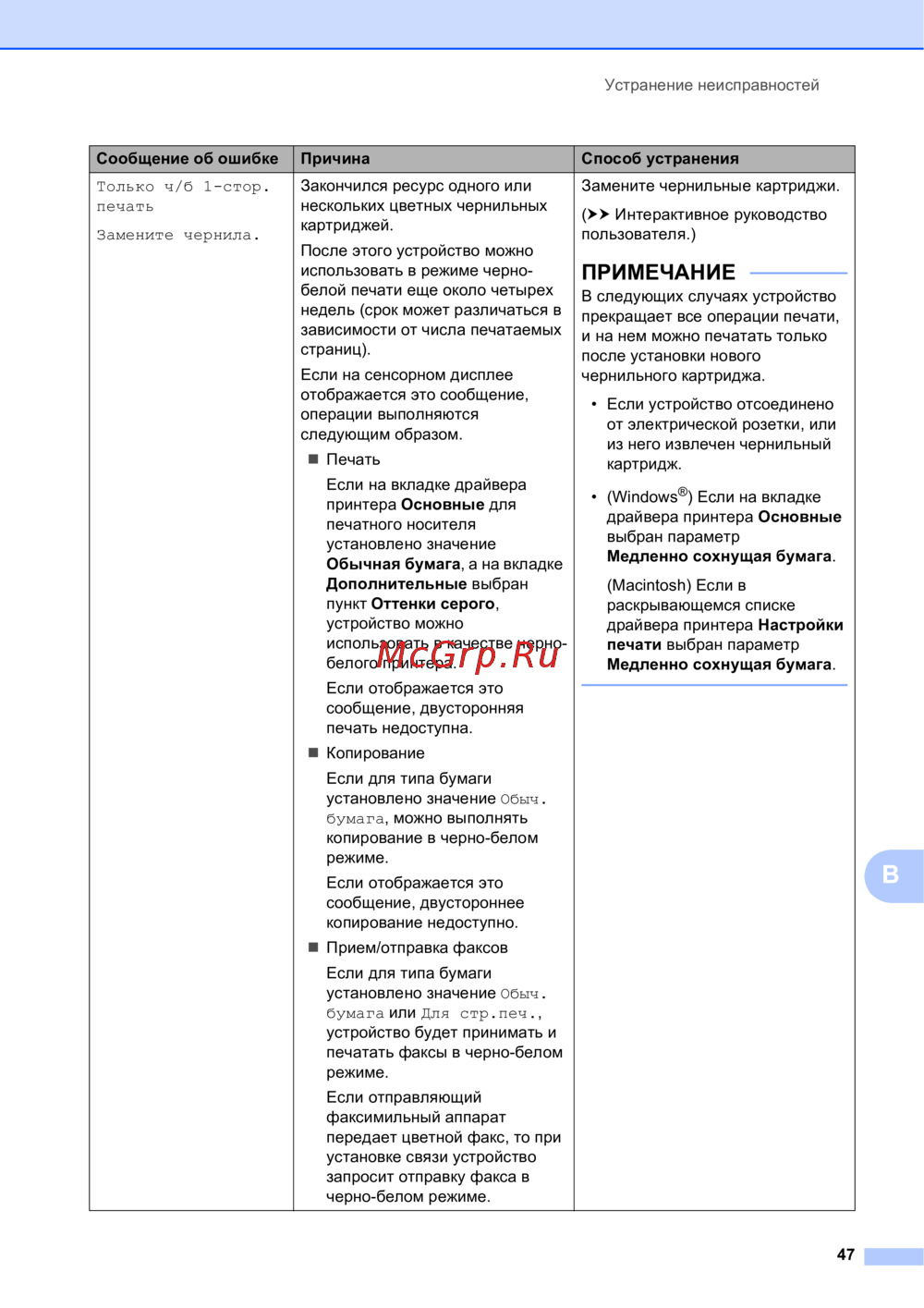 Узнайте, как устранить неисправности печати и использовать устройство в черно-белом режиме. Полезные советы по замене картриджей и настройкам.