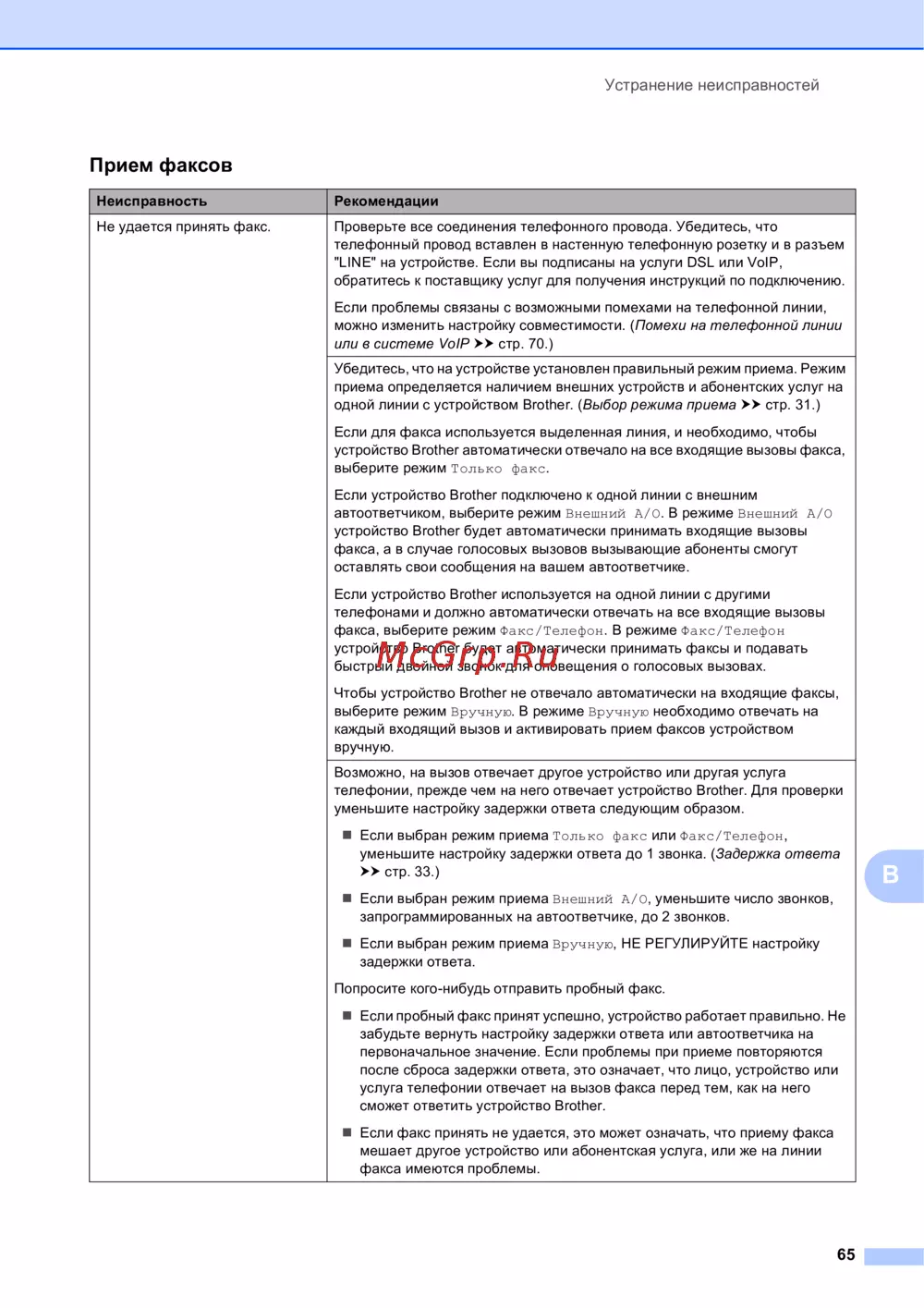 Brother MFC-J2320 — устранение неисправностей при приеме факсов: советы и рекомендации [73/84]