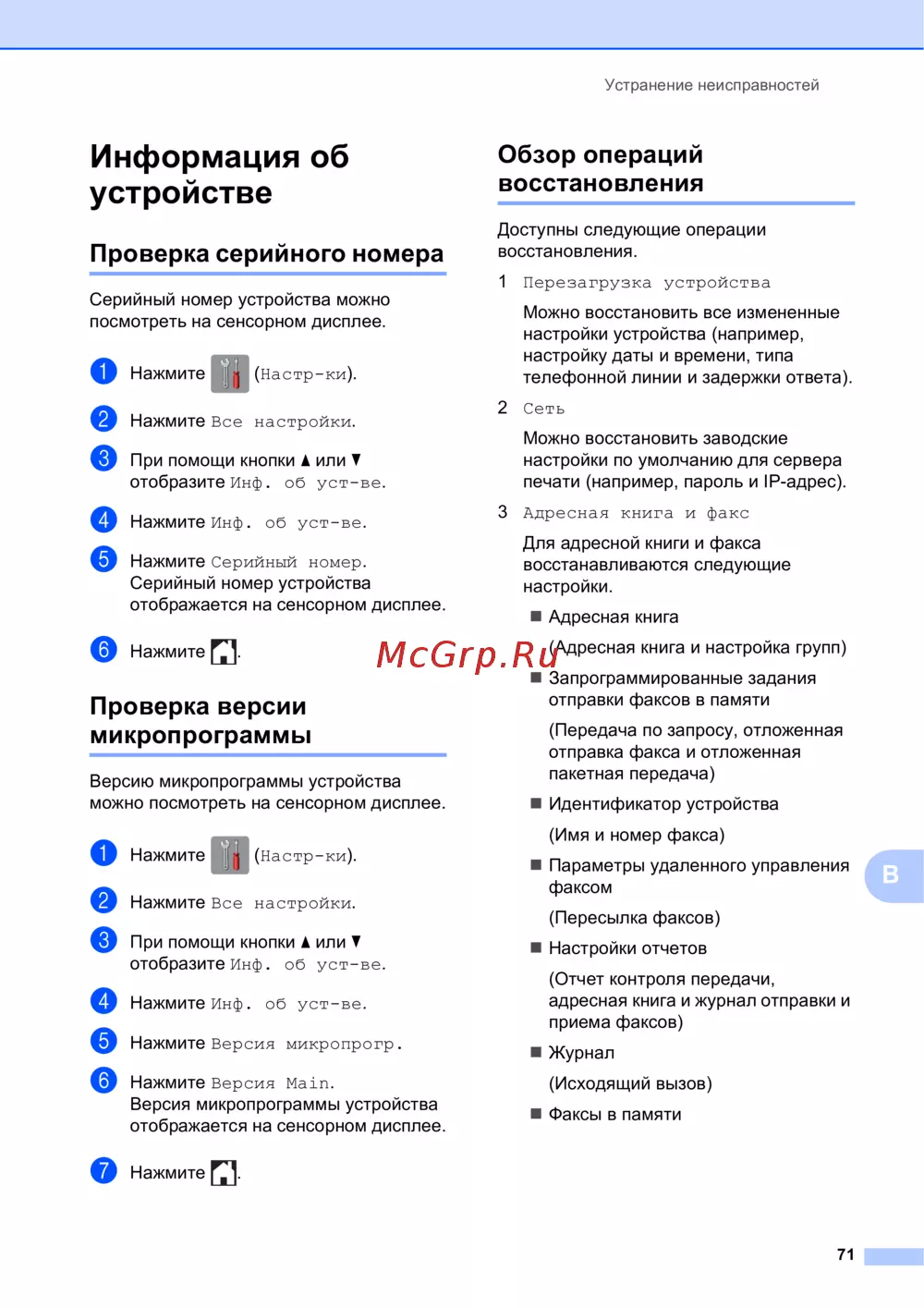 Brother MFC-J2320 — устранение неисправностей и восстановление настроек устройства [79/84]