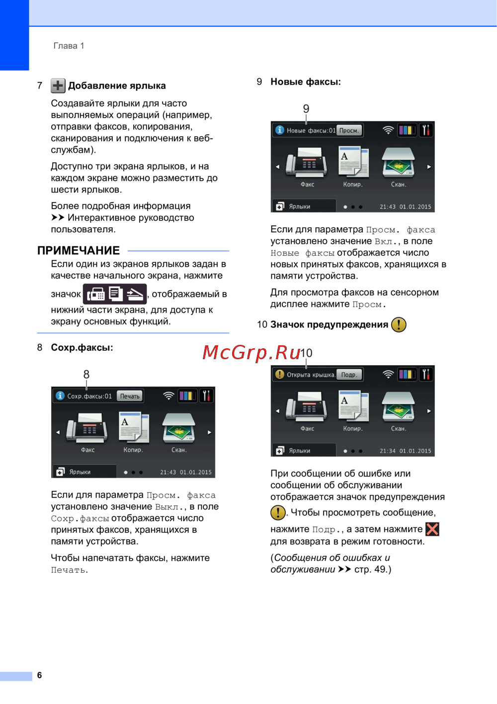 Узнайте, как создавать ярлыки для быстрого доступа к основным функциям устройства, включая отправку факсов и сканирование. Подробности в интерактивном руководстве.