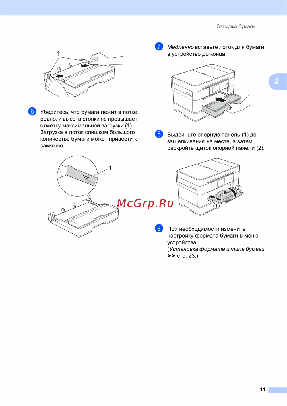 - Загрузка бумаги в лоток 2 p.23