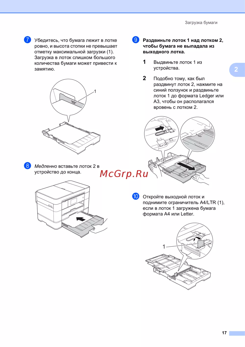 - Загрузка бумаги в лоток 1 p.17