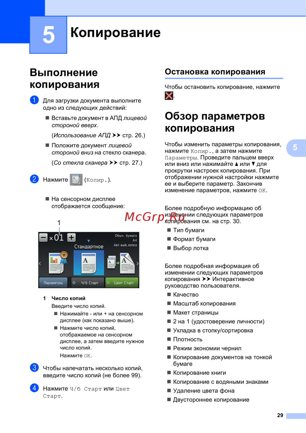 копирования см. на стр. 30.