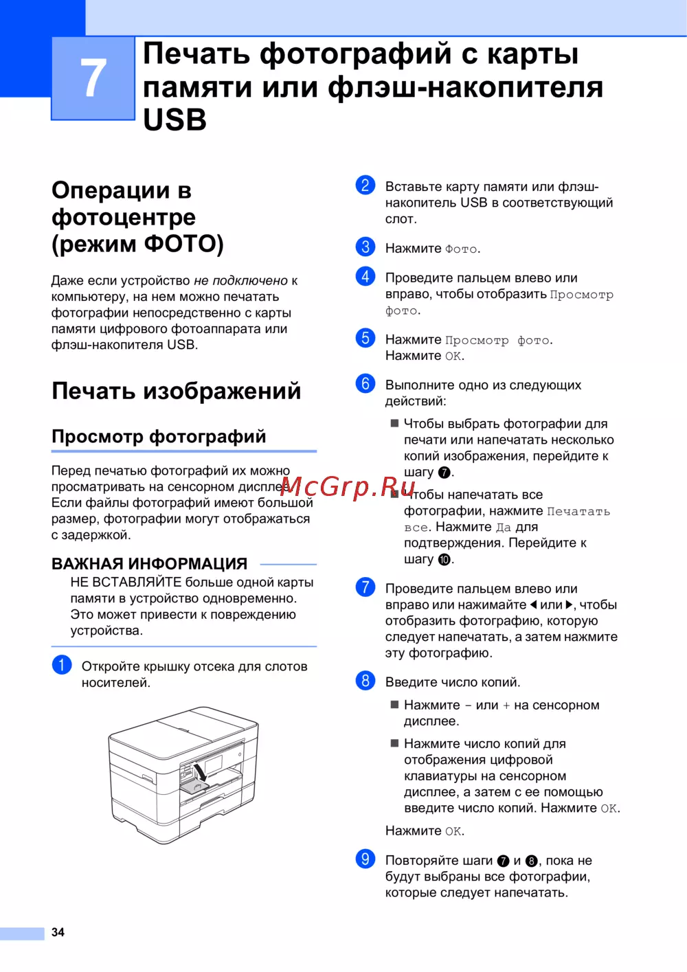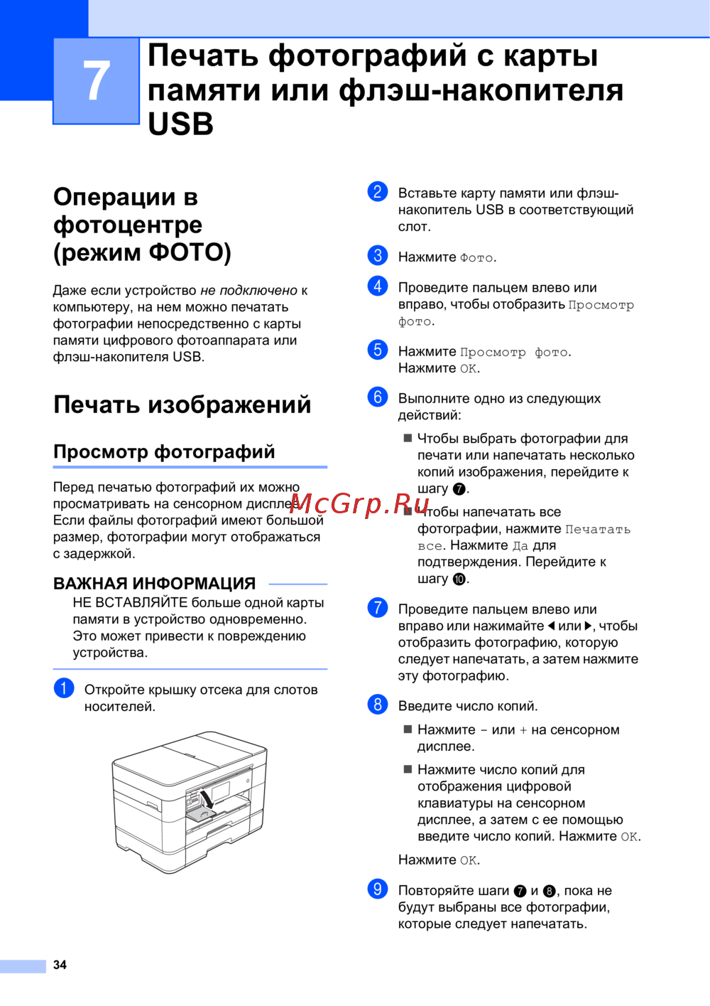 - Печать фотографий с карты памяти или флэш накопителя usb 34 p.7