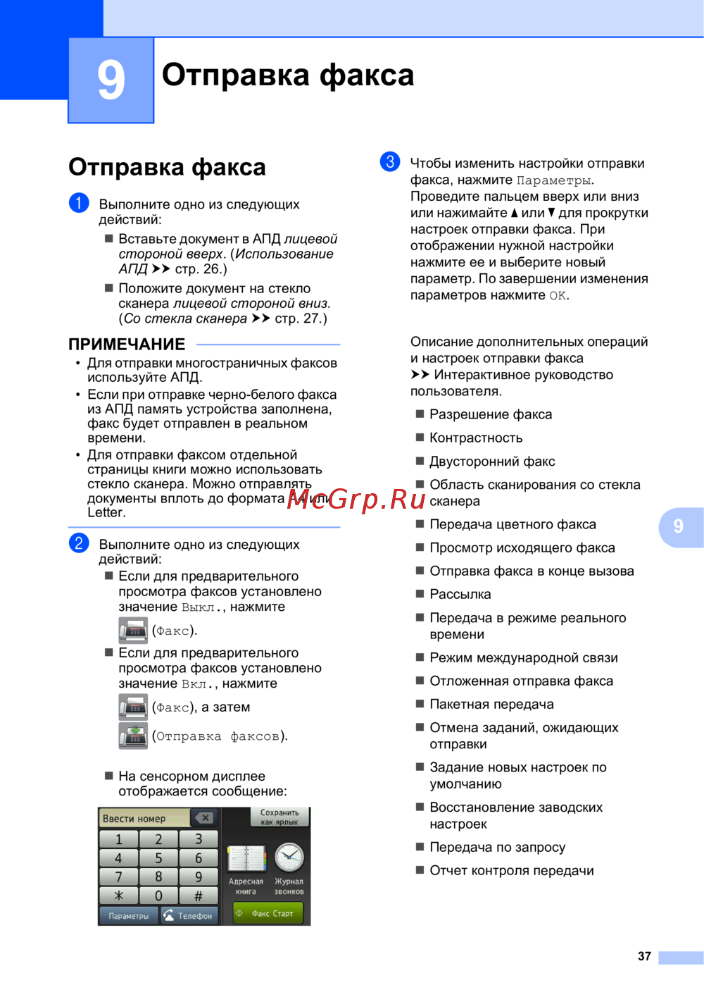 - Отправка отчета журнала отправки и приема факсов на другой факсимильный аппарат p.70