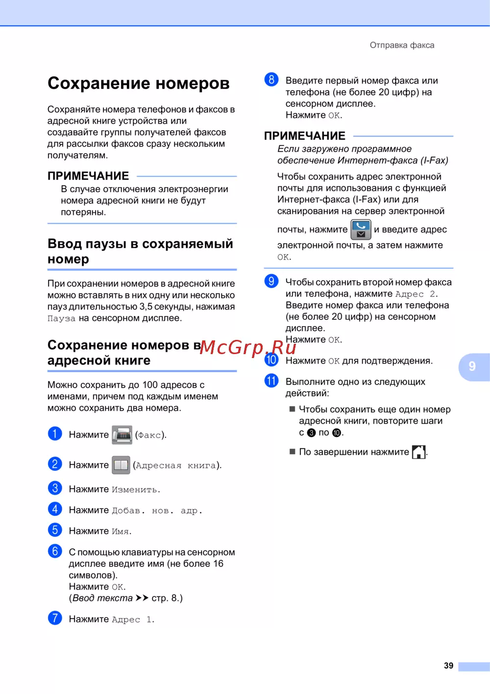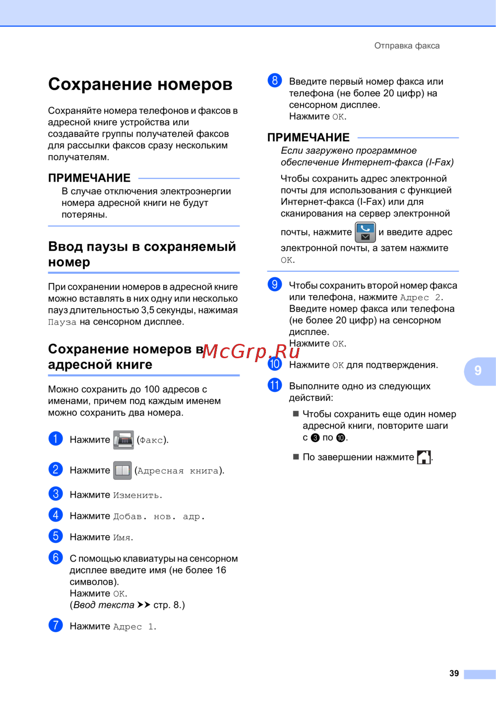 - Отправка факсов p.86