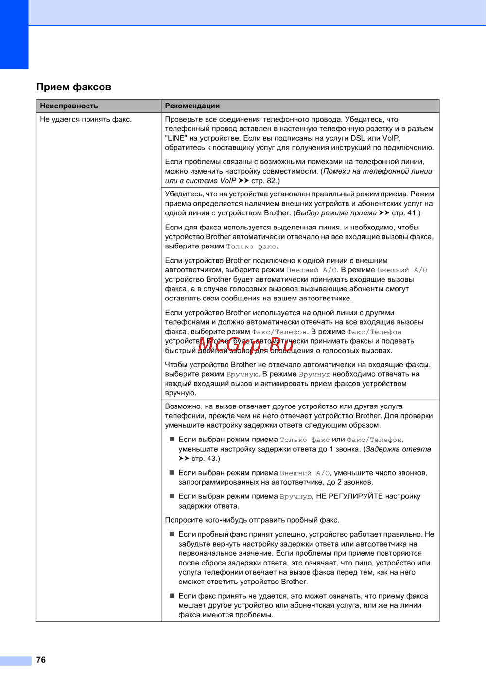 одной линии с устройством Brother. (Выбор режима приема uu стр.41.)