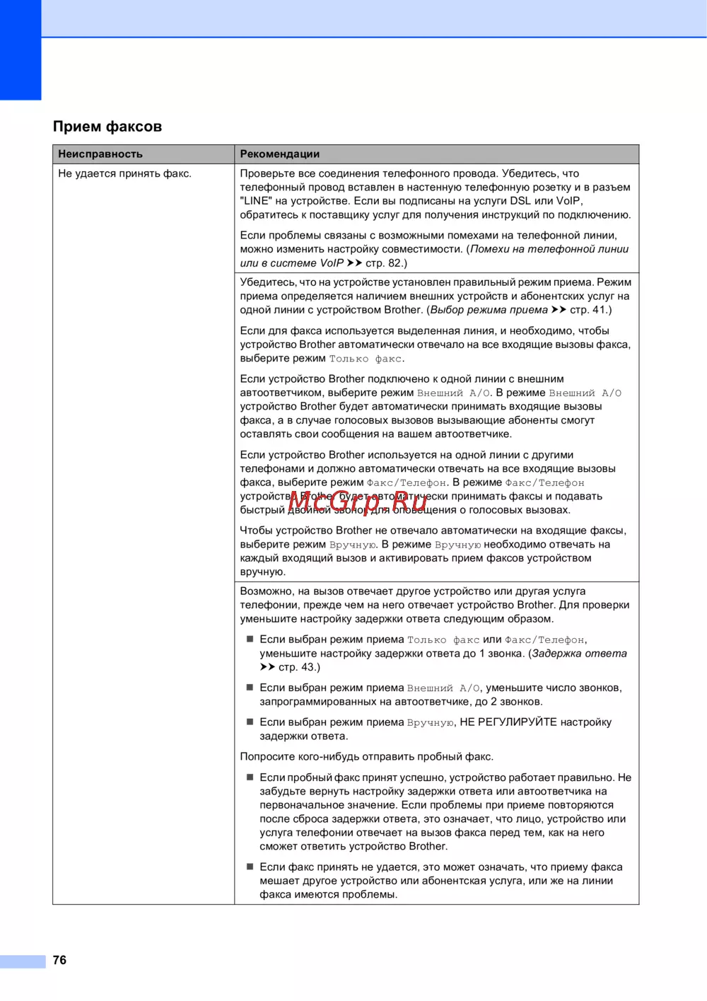 Чтобы устройство Brother не отвечало автоматически на входящие факсы,