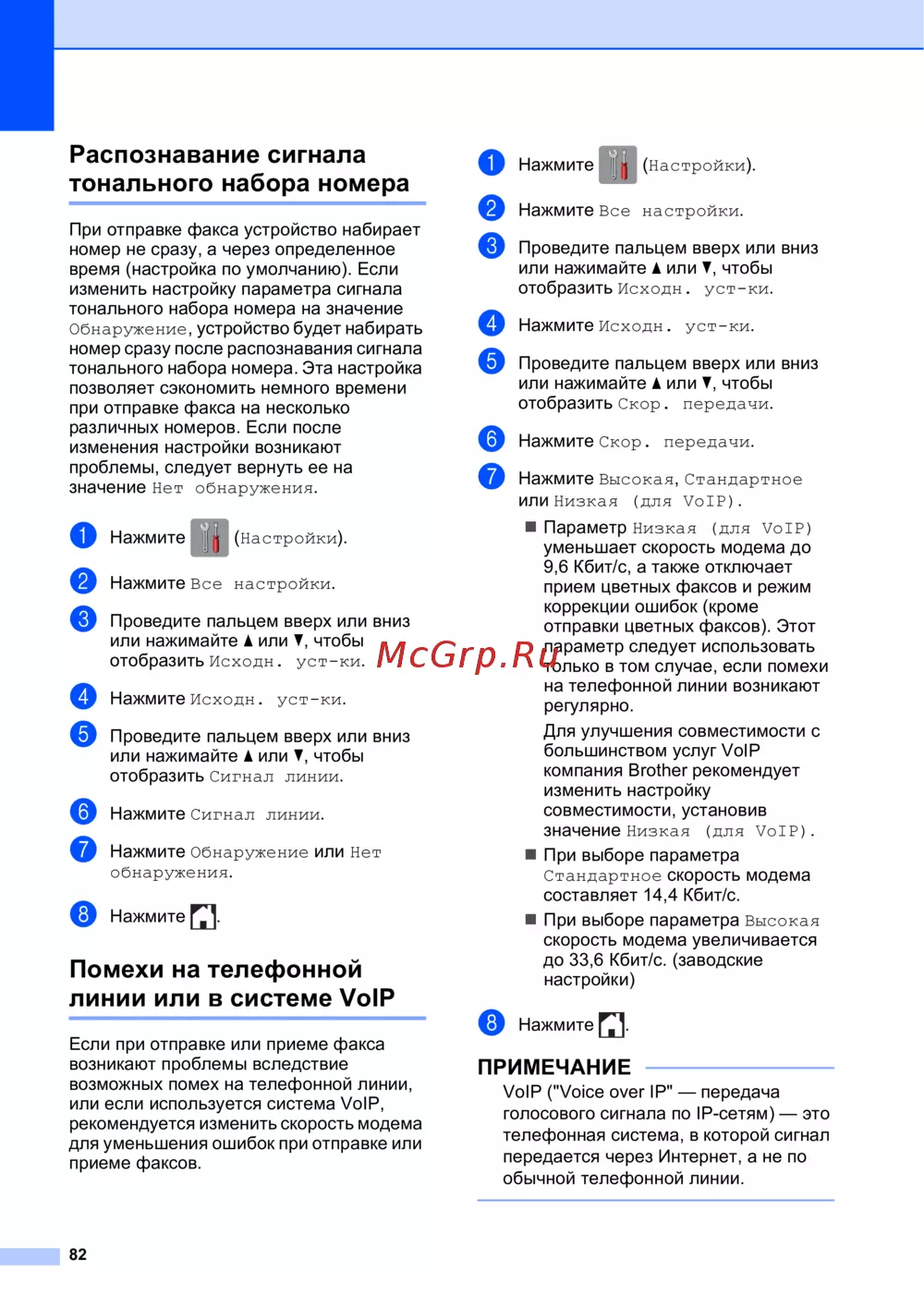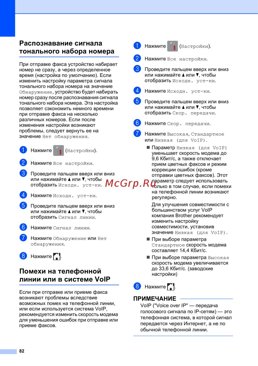 Узнайте, как изменить настройки тонального набора и скорость модема для улучшения отправки факсов. Оптимизируйте работу устройства для VoIP и устраните помехи.