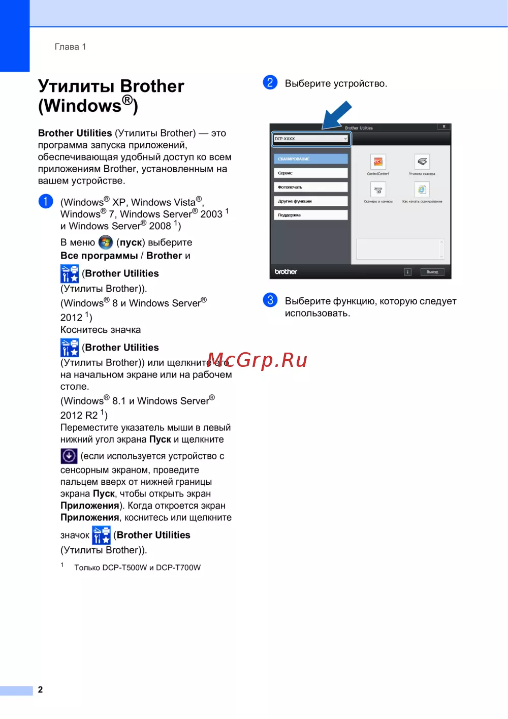 - Руководство по основным функциям dcp t300 dcp t500w dcp t700w p.1