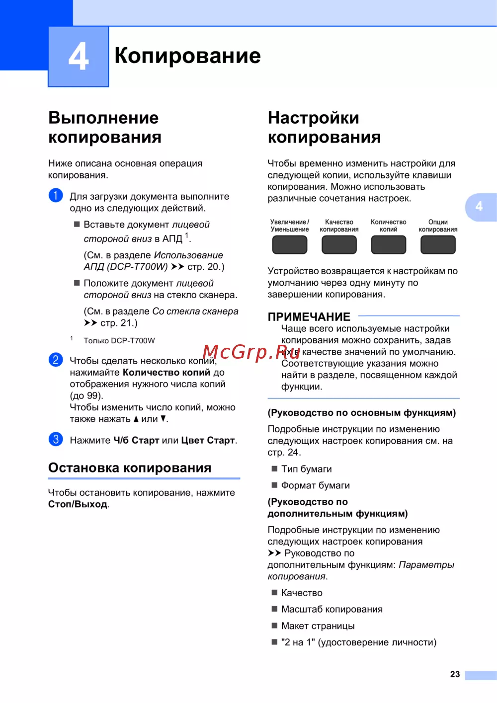 - Руководство по основным функциям dcp t300 dcp t500w dcp t700w p.1