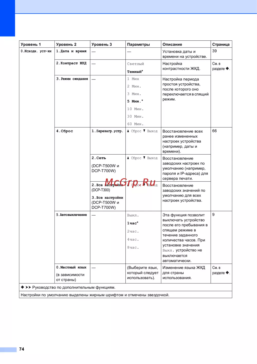 - Меню продолжение dcp t300 dcp t500w и dcp t700w p.81
