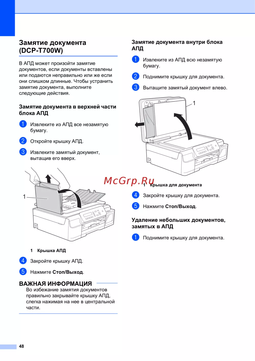 Brother DCP-T300 InkBenefit Plus — как устранить замятие документов в автоматическом податчике [56/102]